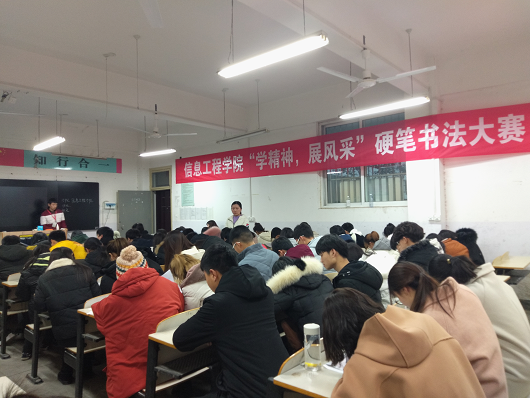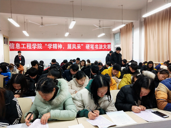 书法是我国悠久的传统文化艺术,为进一步传承和弘扬中国书法文化,激发同学们对祖国灿烂文化和语言文字的热爱,培养正确的书写习惯,引导同学们把汉字写得正确、端正、整洁、美观,提高同学们的书写质量。2018年12月24日下午,awc777万象城娱乐官网举行了以“学精神,展风采”为主题的硬笔书法大赛决赛。