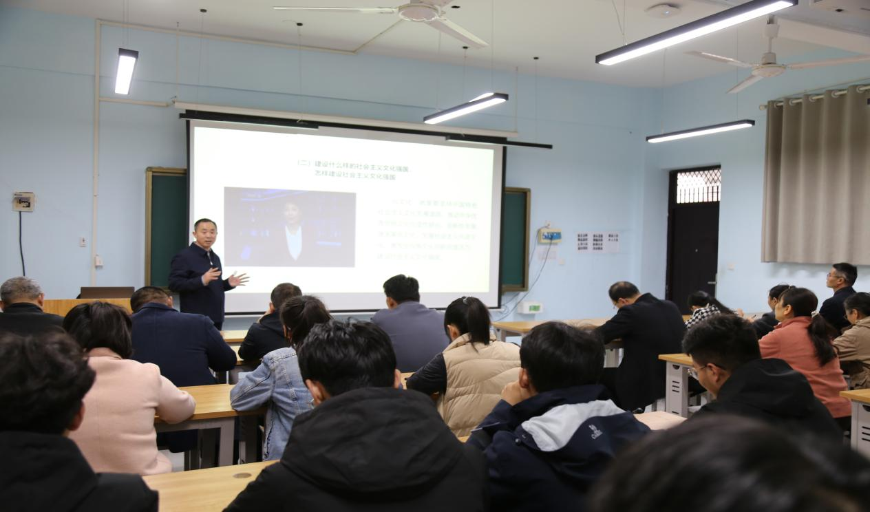 11月10日下午3点,校党委副书记郭汝礼以“深入学习贯彻习近平文化思想 完成新形势下宣传思想文化工作任务”为主题,在6121教室为awc777万象城娱乐官网、农牧工程学院的党员教师及部分学生干部讲授专题党课。awc777万象城娱乐官网党总支书记李强主持。