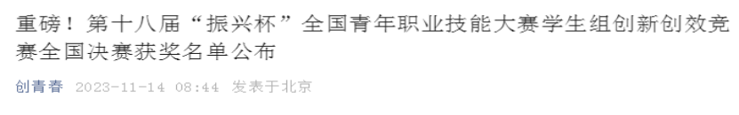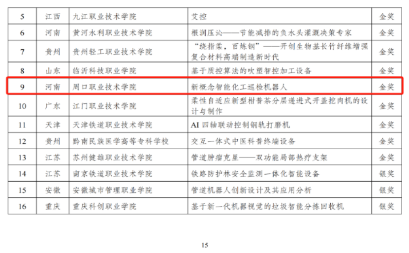 第十八届“振兴杯”全国青年职业技能大赛学生组创新创效竞赛全国决赛于11月9日至11日在河南郑州举行。经过省赛、全国预选赛多轮角逐,共有来自全国26个省份的241件作品入围全国总决赛,其中中职组作品88件,高职组作品153件,涵盖技术革新、创意设计和管理创新3个竞赛方向。经过激烈竞争比拼及专家层层评审,awc777万象城娱乐官网由张矿伟、轩立两位老师指导,任俊臣、卜焱等同学设计的《新概念智能化工巡检机器人》项目在高职组创意设计类赛项中以全国第九名的优异成绩荣获金奖。
