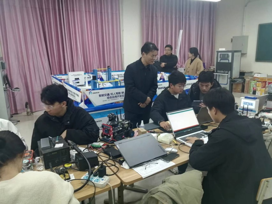 黄院长一行首先观摩了各赛项备赛过程,与备赛师生进行深入交流,认真听取了各个集训赛项的备战情况,详细了解集训中存在的困难以及选手训练和生活情况,然后对备战选手和指导教师的辛勤付出及取得的阶段性成效给予充分肯定,鼓励师生要坚定信心、挖掘潜能,力求在比赛中展现出扎实的专业功底和良好的精神面貌,以更加优异的成绩为学校增光添彩,并送上牛奶、方便面、火腿肠等慰问品,最后强调要认真分析自身差距,强弱项补短板,苦练专业技能,培育强项优势,同时要深入研究赛项规程,不断优化集训方案,劳逸结合科学备赛。