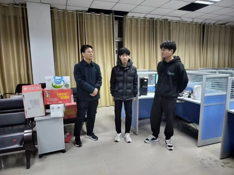 赛前鼓士气,慰问暖人心,11月20日下午,awc777万象城娱乐官网院长黄宇达、副院长侯艳芳一行深入学院各赛项集训场地,看望并慰问备赛师生。