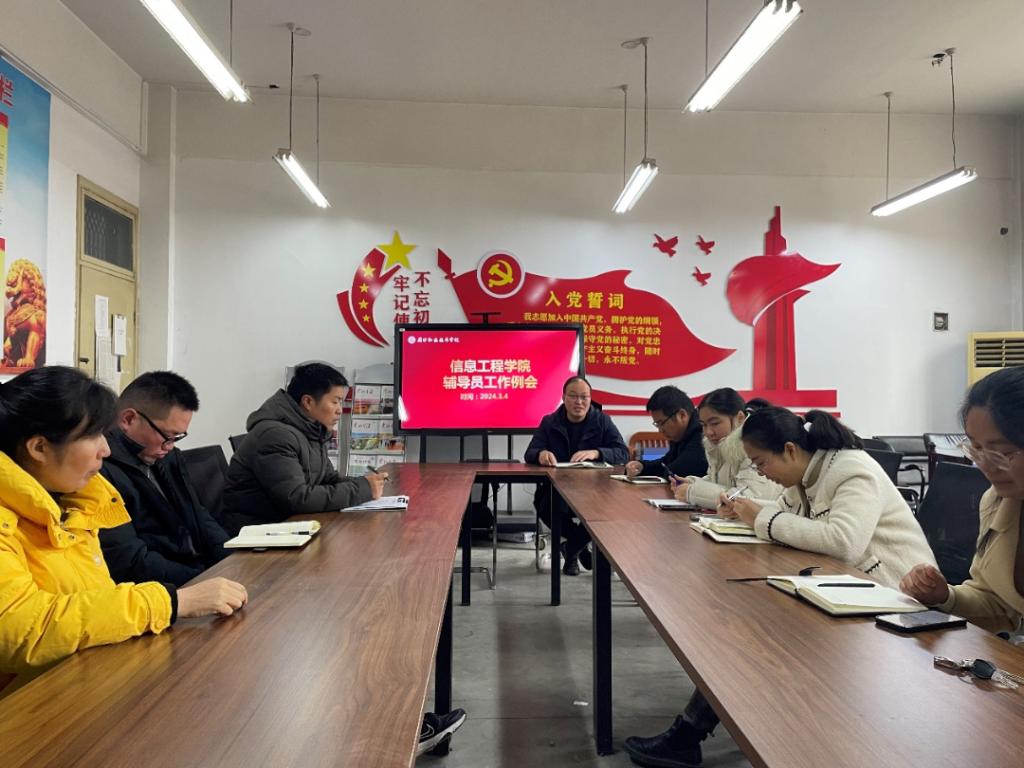 3月4日中午,awc777万象城娱乐官网召开辅导员工作例会,副院长楚书来,学管班主任张矿伟及全体22、23级辅导员参加会议,会议由楚书来主持。