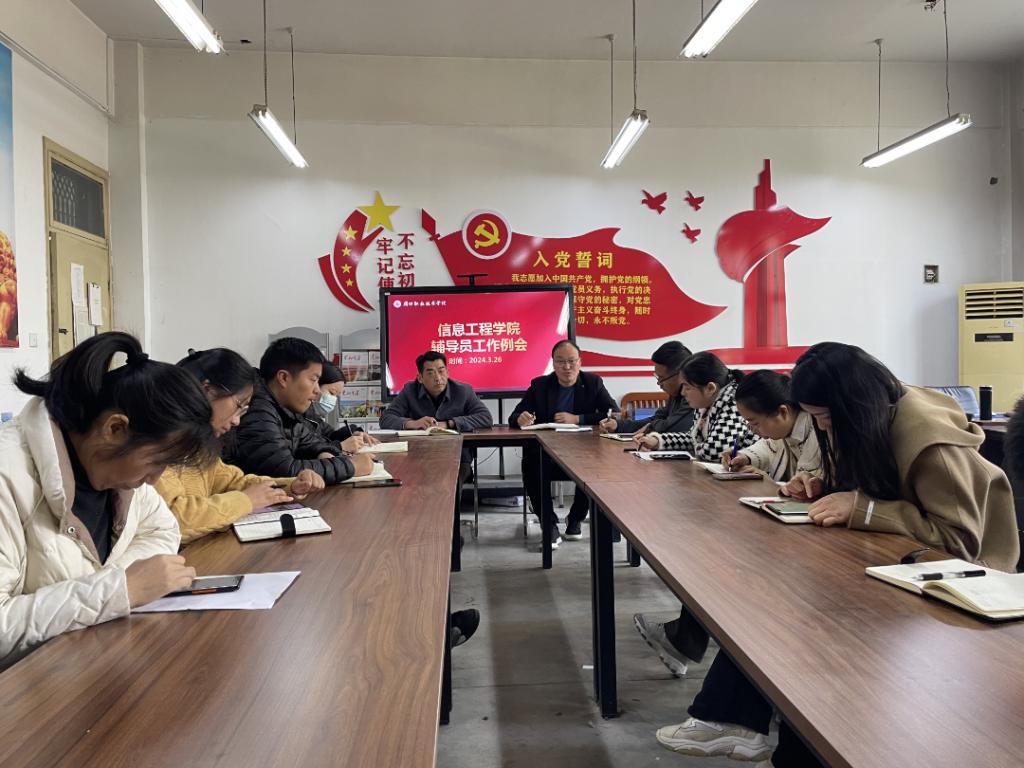 3月26日中午,在学院办公室6140,awc777万象城娱乐官网召开辅导员工作例会。党总支书记李强,副院长楚书来,学管办主任张矿伟及22、23级全体辅导员参加了本次会议,会议由楚书来主持。