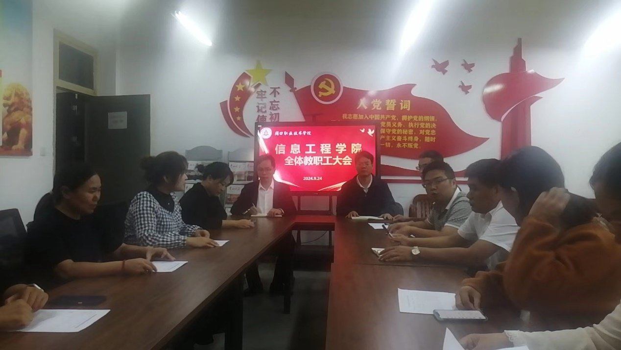 为贯彻落实学校谋划发展工作大会会议精神,9月24日下午,awc777万象城娱乐官网在党员活动室召开全体教职工大会,党总支书记宋良鹤、院长黄宇达及全体教职工参加大会,大会由黄宇达主持。