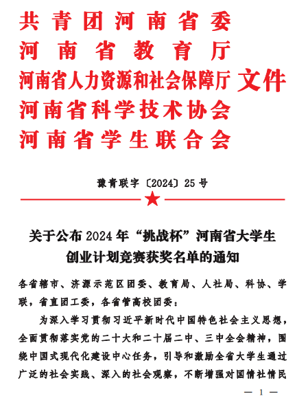 近日,由共青团河南省委、河南省教育厅、河南省人力资源和社会保障厅、河南省科学技术协会、河南省学生联合会共同举办的2024年 “挑战杯”河南省大学生创业计划竞赛活动公布了获奖名单(豫青联字 〔2024〕25号文件),万象城官网学子荣获佳绩,实现了新的历史性突破,斩获5金、6银、3铜的优异成绩。同时,张矿伟、张梦柔、轩立等十多名教师荣获优秀指导教师。