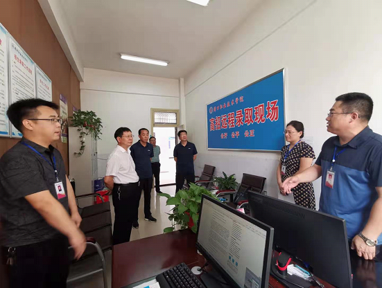 8月5日上午,校长李清臣、副书记李森、副校长许永安到学校高招远程录取现场,看望慰问暑期坚守招生录取一线工作人员,检查指导招生录取工作。