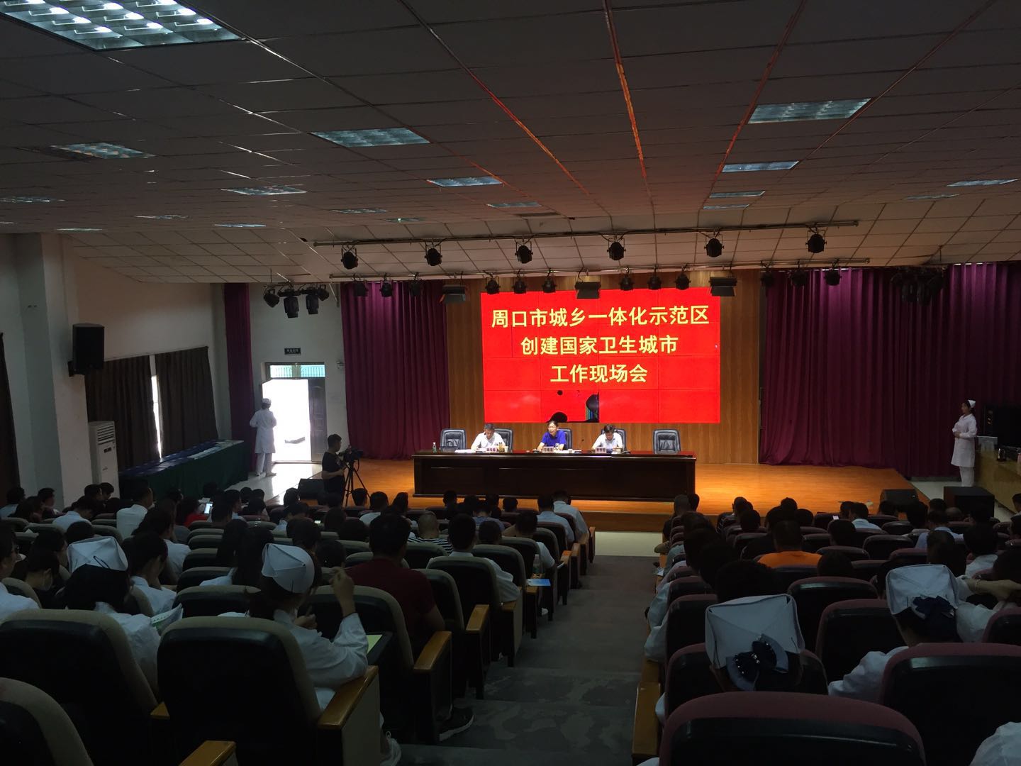 6月10日下午,周口市城乡一体化示范区创建国家卫生城市工作现场会在beat365官网文昌校区召开。区管委会副主任丁有亮主持会议并讲话,区32家单位相关同志参加会议。