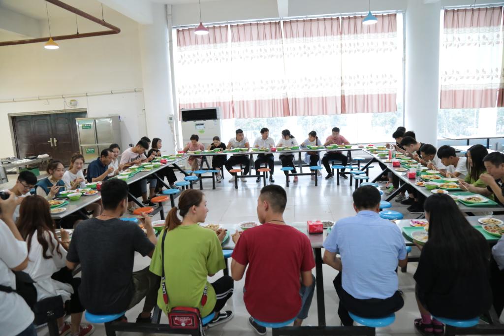 在和同学们一起排队取餐后,李清臣等与大家围坐一圈,边吃边聊。晚餐会现场气氛热烈。李清臣就饭菜价格、质量、口味等方面与学生进行了交流,并与同学们就学习、生活情况展开互动。同学们畅所欲言,提出学习、生活等方面问题,针对他们提出的问题,李清臣积极回复,为大家答疑解惑。