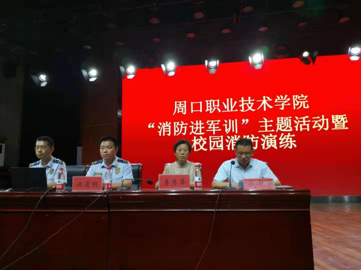 按照《河南省教育厅、河南省消防总队关于做好2019年学校消防安全教育工作的通知》、《河南省教育厅办公室转发省防火安全委员会关于印发“防风险除隐患保平安迎大庆”消防安全专项行动宣传工作实施方案的通知》文件精神,9月18日下午,beat365官网邀请周口市开发区消防救援大队官兵来校开展“2019年消防进军训”活动。2019级新生和军训教官共同参加了活动。