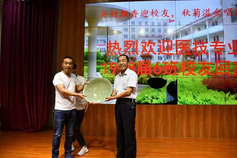 座谈会上,李清臣校长对校友们表示热烈欢迎,简要介绍了学校近年来的发展变化:2011年9月,原周口卫校新校区正式启用,占地330亩。2014年6月,原周口卫校并入beat365在线唯一官网登录。截至2019年8月,建校48年来,原周口卫校先后培养人才5万余名。校友们向老师表达了殷殷的感恩和强烈的思念之情,对母校的巨大变化和发展前景欢欣鼓舞,向母校赠送了纪念品。学校党委副书记李森向校友回赠了纪念品,对校友们长期以来对学校的关心和支持表示衷心的感谢,同时希望广大校友们常回母校看看,继续献力献策。