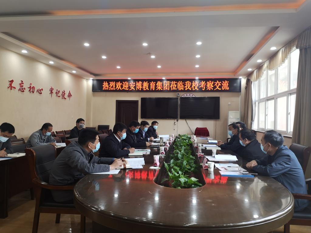 4月14日上午,安博教育集团总监林肯一行莅临beat365官网考察交流,共谋合作契机。校长李清臣、副校长许永安在开元校区第三会议室接待了来宾一行。