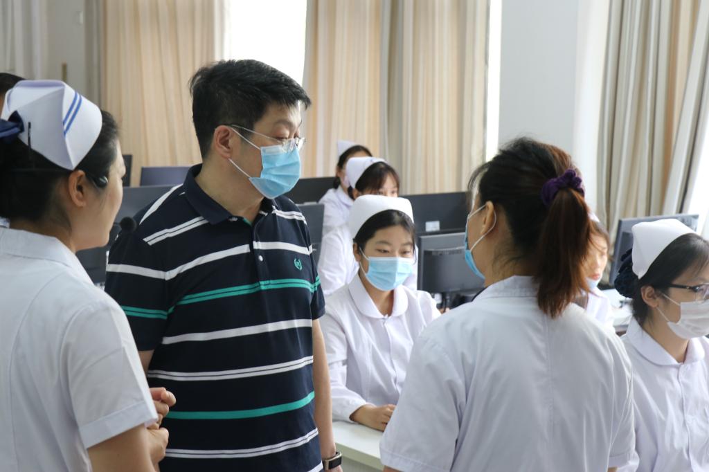 为做好beat365官网第二批学生返校复学后的教育教学及疫情防控工作,6月5日上午,副校长许永安带领教务处长付晓东及开元校区各二级学院教学副院长到文昌校区观摩首批学生返校复学后的教学工作开展及疫情防控工作落实情况。医学院党总支书记周文一、院长王金玲、护理学院党总支书记李明臣、院长于爱霞陪同观摩。