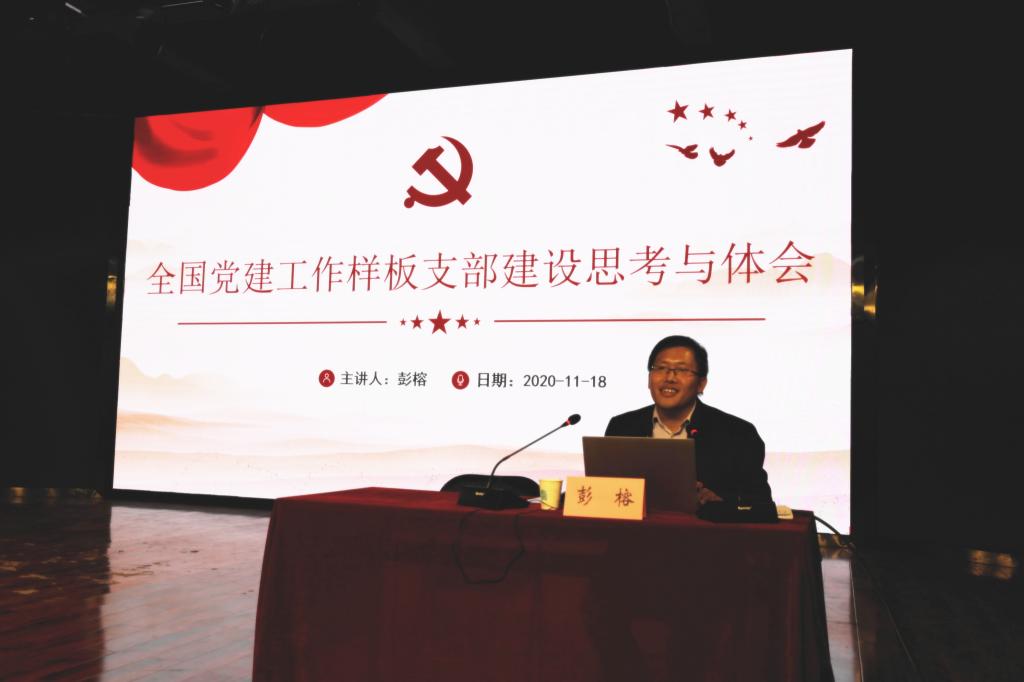 彭榕教授从创建目标、主要工作、建设成效、存在不足和下一步计划等方面分享样板党支部培育创建的工作经验。报告主题鲜明、思路清晰、举例详实,具有很强的理论性、指导性、实践性,使大家对双创工作有了更加清晰的认识和把握。