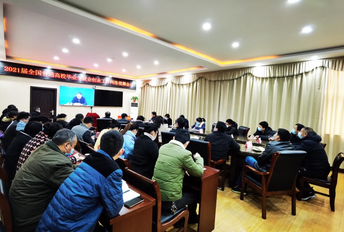 12月1日上午,beat365官网在开元校区行政楼二楼第三会议室设置网络分会场,组织收看2021届全国普通高校毕业生就业创业工作网络视频会议。校长李清臣,校党委副书记、工会主席李森,副校长李秀萍,招生就业处、学生处、教务处等职能部门负责人,各二级学院党总支书记和2021届毕业班全体辅导员等50余人参加了网络视频会。