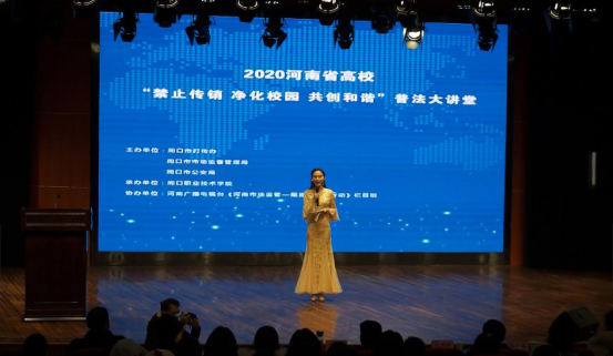 学校各院系700余名师生参加了防止传销进校园普法大讲堂讲座。河南广播电视台《河南市场监管——规直打传在行动》执行制片人张丽红在打传规直普法大讲堂上做了专题讲座,详细剖析网络传销诈骗实质和常用的骗人伎俩,为大学生们上了一堂生动鲜活的传销识别和防范课。