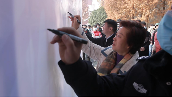在活动结束后,各位领导、同学观看了“防止传销进校园”主题展板,并在签名墙上签名。