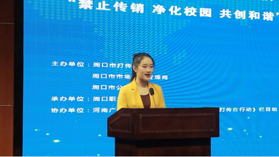 周口市打传办、周口市市场监督管理局党组成员王树平表示,举办高校“禁止传销、净化校园、共创和谐”普法大讲堂宣传活动,就是要让我大家进一步认清传销的新模式、新手段、新业态,进一步增强大家鉴别力、防范力、抵制力,坚决阻断传销向校园渗透的途径,坚决铲除传销在校园滋生的土壤,创建平安和谐校园,让同学们有一个安心、良好的学习环境;同时,也希望在校的大学生都能成为禁止传销的宣传员、播种员,让家人亲戚、同学朋友,都能增强防范意识、自觉禁止传销、自觉远离传销,为建设平安周口贡献力量,为决胜全面建成小康社会打造安全稳定的环境,共圆中国梦!