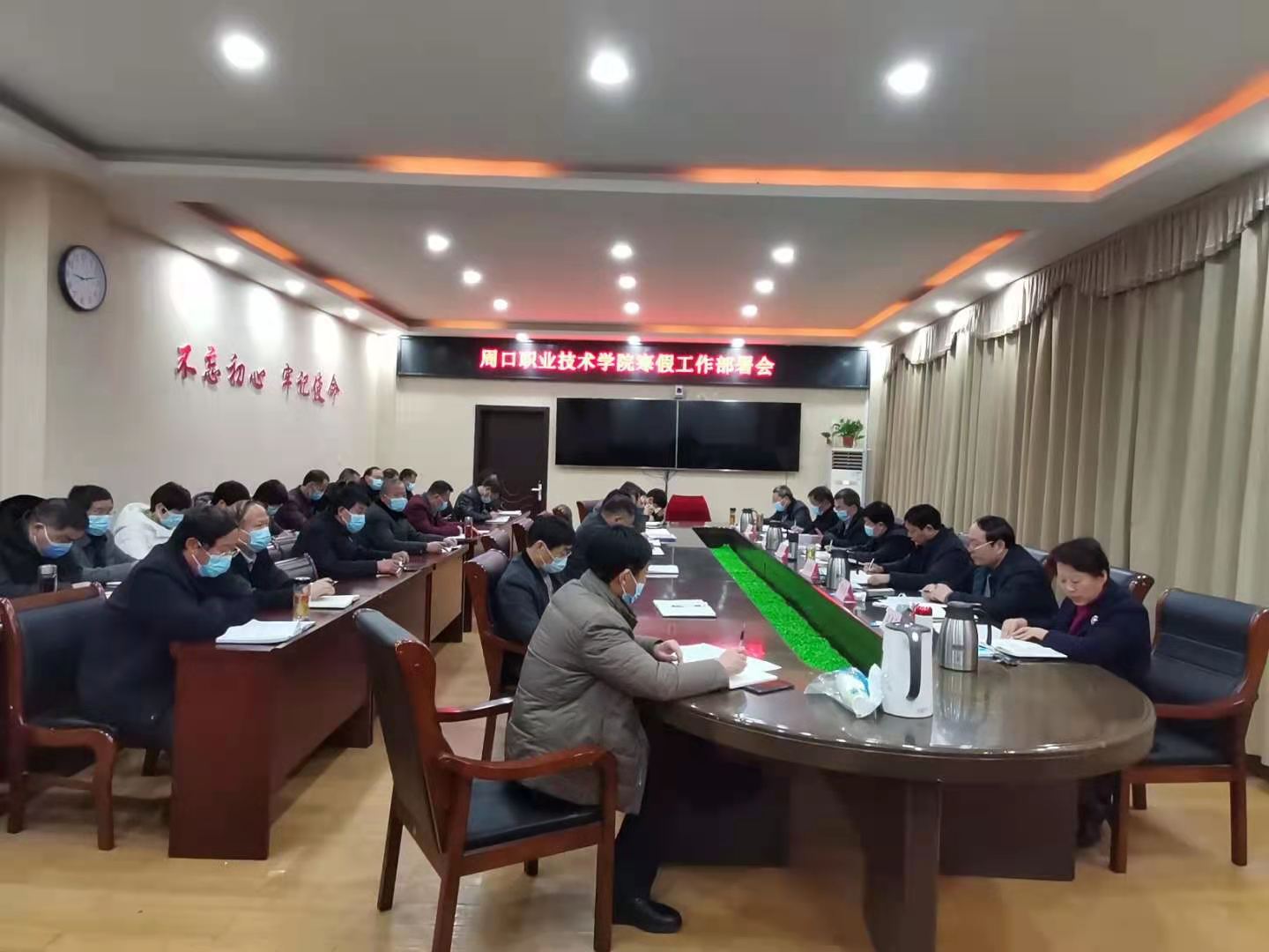 校长李清臣系统总结了2020年学校各项工作及取得的成绩,并对寒假期间的工作进行了周密部署。他指出,2020年是极不平凡的一年。在校党委的正确领导下,全校教职工攻坚克难,奋勇争先,学校在疫情防控、招生、教育教学、学生管理、后勤服务、人事制度改革等方面的工作取得了令人瞩目的成绩。寒假期间,各部门要积极做好以下几方面的工作:一是疫情防控工作。全校上下要高度重视,严阵以待,高标准完成各项疫情防控工作任务。各部门要通知所属员工寒假期间一定要遵纪守法,服从疫情期间的各项工作要求,非必要,不外出,确实必须外出,严格履行请假手续。各部门及工作专班要各司其职,各负其责,密切配合,确保疫情防控各项工作落实落细;二是各部门要根据职责积极做好寒假期间本部门各项工作。 “酒香也怕巷子深”,各部门要高度重视寒假期间新闻宣传工作,要讲好周职故事,传播好周职声音,把学校各方面工作宣传好报道好,进一步提升学校良好的社会形象;三是要高度重视寒假期间几个问题。第一是安全问题,尤其是校园安全、出行安全、疫情安全。第二个要提倡节俭,注重节约。第三,各部门要高度重视,周密安排,做好寒假期间各项值班工作。第四,各部门在寒假期间,要积极思考,提前谋划2021年各项重点工作,为学校“十四五”期间的发展谋好篇,开好局。