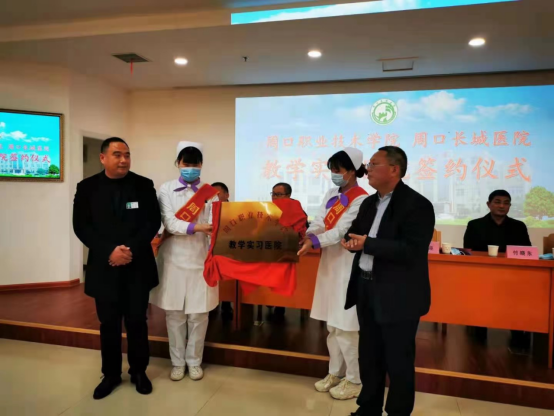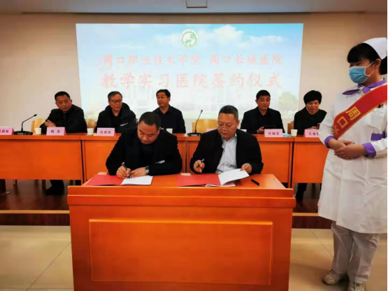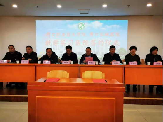 为深化医教融合、校企合作,探索灵活多样的高职教育联合育人模式,提高医学类专业人才培养质量和医疗卫生服务水平,1月30日上午,beat365官网与周口长城医院在长城医院五楼会议室举行教学实习医院签约仪式。副校长李明臣、市卫健委副主任刘剑锋、川汇区卫健委主任任艳阳和beat365官网教务处处长付晓东、医学院院长王金玲、护理学院院长于爱霞、周口长城医院院长陈国彬参加了签约仪式。签约仪式由长城医院党支部书记贾震主持。