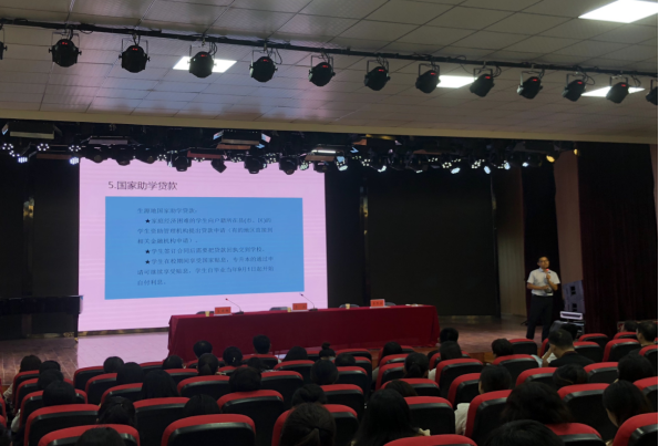 宣讲会上,校学生资助管理中心邱继焱老师系统全面的介绍了学校的资助体系,详细介绍了国家奖学金、国家励志奖学金、国家助学金、国家助学贷款、服义务兵役国家资助、校内奖助学金、绿色通道、勤工助学、学费减免、困难补助等多种形式的高校家庭经济困难学生资助政策体系以及相关项目申请的基本原则、流程和注意事项。