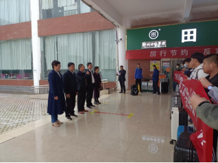 最后,学校领导跟随大巴车来到学校大门口挥手与带队老师和学生们告别,并目送他们离开。