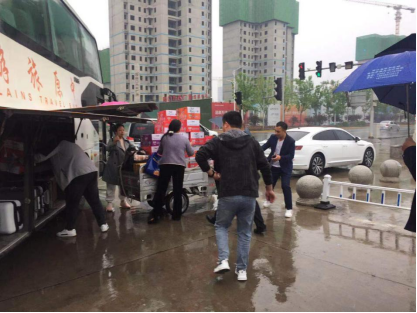川汇区人社局领导特别关心学生在车上的饮食问题,为参加本次实践活动的学生准备了“旅途中的爱心餐”。