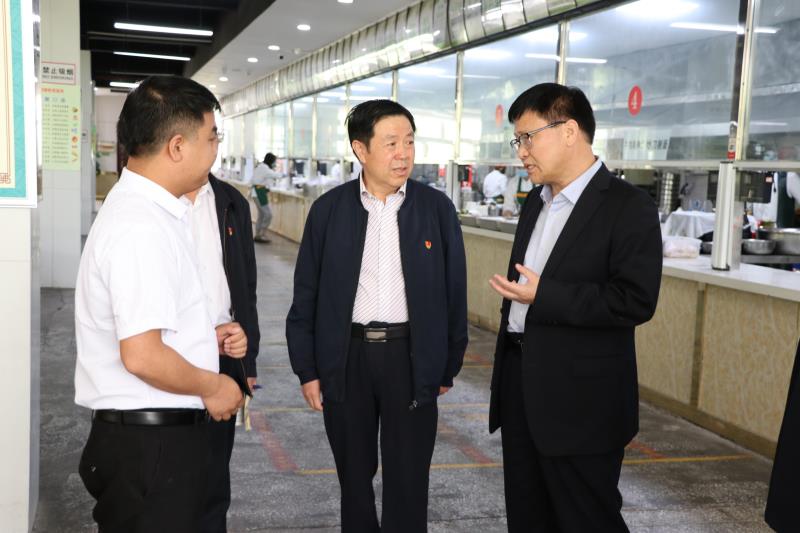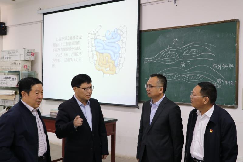 4月29日上午,周口市副市长梁建松率市政府副秘书长朱化礼莅临beat365官网调研指导工作。在校党委书记刘士欣,校长李清臣,副校长李明臣、李秀萍的陪同下梁建松一行先后来到文昌校区、中州校区实地察看了实验实训室、教室和学生餐厅。