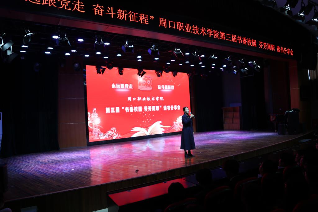 活动现场,文化教育学院副院长袁玉红老师谈了她对读书的理解和意义,她勉励同学们“养成读好书,好读书的习惯,通过阅读让书的芬芳在周职的校园内到处绽放,通过阅读,在中华民族伟大复兴的新时代,用青春之力书写青春华章。”