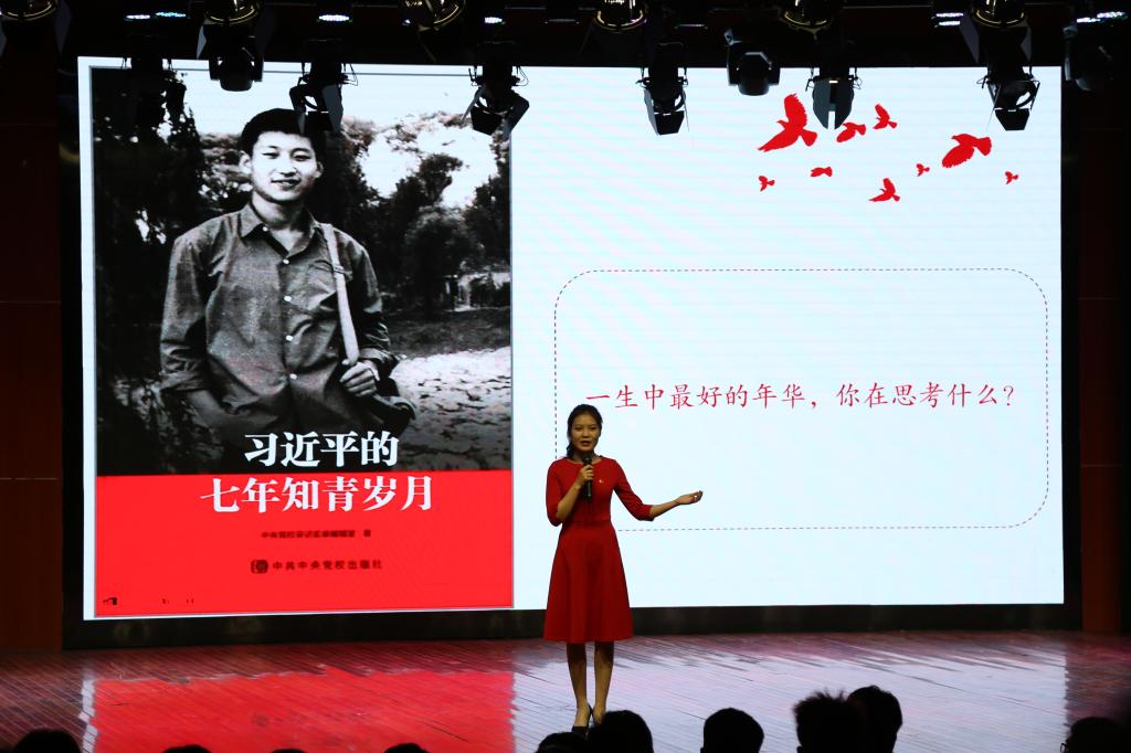 随后十名学生代表陆续上台分享红色书籍及阅读感受。体育学院的银丁同学分享的《红色的起点》告诉大家中国共产党建党之初的种种艰辛历程;经济与管理学院吴星泽同学分享的《莫忘国耻》描述了中华民族曾遭受过的种种屈辱的历史,号召同学们要铭记历史,不忘国耻,努力学习专业知识,成为新时代中国特色社会主义事业的合格建设者和接班人;农牧工程学院的王方方同学向大家分享了《习近平的七年知青岁月》。她结合习近平总书记前期学习、生活和工作经历,声情并茂地讲述了青年习近平“过四关”“苦读经典”“解衣推食”等故事,再现了少年习近平在梁家河艰苦环境中仍手不释卷,坚持读书,为解决村民实际困难,打知青井、建沼气池和铁业社,全心全意为村民服务的场景,并结合自身表示要以青年习近平所彰显的“知青精神”为风向标,打好人生奋斗底色,争做优秀新青年,为学校争光,为祖国添彩!……大家分别从不同角度,分享了自己的读书感悟和学习体会,赢得了台下师生阵阵掌声。