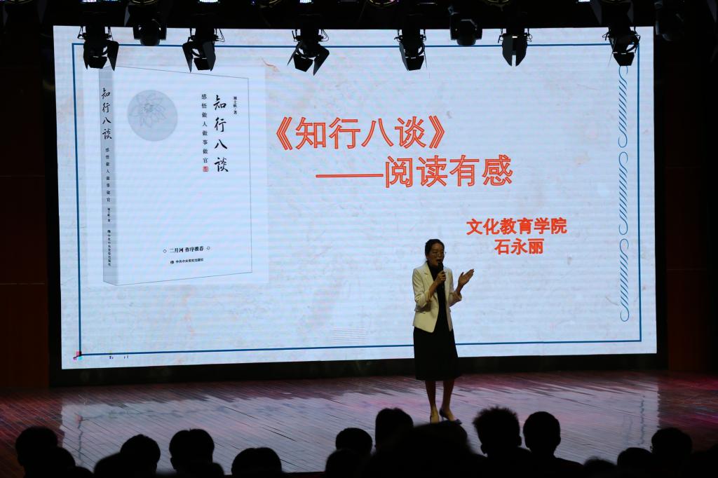 “厚厚一本《知行八谈》,信手翻来,坦然可见著者的良苦用心,灼然可感其对社会的一份赤城。妙语趣言,随处可见;百家小品,杂然而陈……读来轻松愉悦,掩卷犹有余香。《知行八谈》,值得一读。”文化教育学院石永丽老师向与会师生们分享的《知行八谈》,将整场读书分享会推向了高潮。