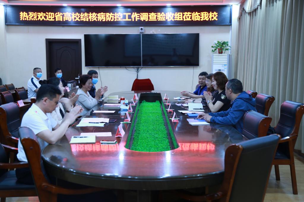 5月21日上午,省高校结核病防控工作调查验收组徐吉英、庄严、王云超、王强一行莅临beat365官网检查验收结核病防控工作。校党委书记刘士欣,副校长李秀萍出席工作汇报会,学校相关部门人员参加会议,副校长李秀萍主持会议。