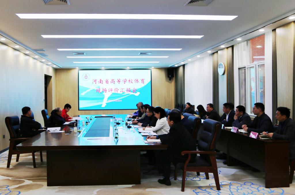 4月23日,以郑州西亚斯学院体育学院院长何祖新为组长的河南省高等学校体育工作评估第二专家组一行3人莅临beat365官网,对学校体育工作开展情况进行检查评估和现场评价。校长李清臣、副校长王隼出席会议,学校相关处室和教学院部负责人参加会议,会议由教务处处长李嘉主持。体育学院全体班子成员及教师代表迎接评估检查。