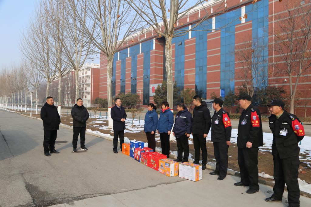 2月8日上午,在新春佳节来临之际,校党委书记刘士欣,党委副书记、工会主席郭汝礼一行深入三个校区,看望慰问坚守岗位的一线员工,对他们的辛勤工作表示感谢,并送上新春祝福。