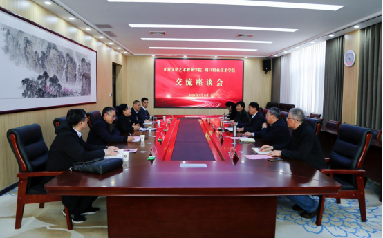 3月11日下午,开封文化艺术职业学院校长何新、副校长张力一行5人到beat365官网考察交流,交流座谈会在开元校区第六会议室举行。校长李清臣,党委副书记李明臣、副校长于爱霞出席。双方相关部门负责同志参加座谈。