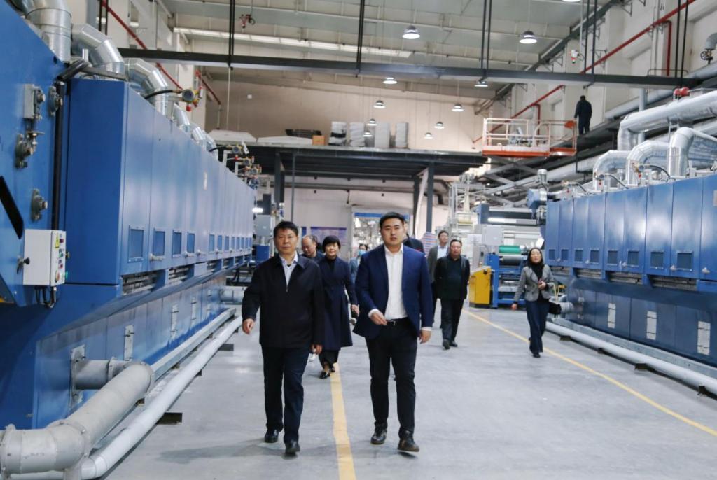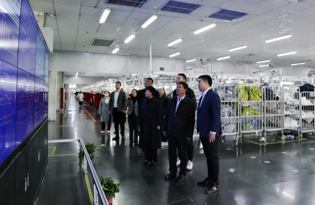 河南盛泰服饰有限公司副总经理崔玮聪对李清臣一行的到来表示热烈欢迎,并陪同参观公司服装、刺绣、印染、烘干等生产车间,详细介绍公司发展历程、主营业务、产品制作、校企合作等情况。