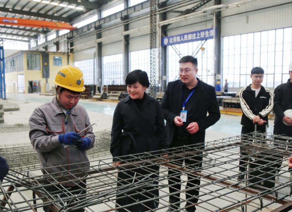 周口筑友智造科技有限公司总经理宋春风对于爱霞一行的到来表示热烈欢迎,陪同参观装配式PC构件流水生产线以及绿色建筑科技园展厅。
