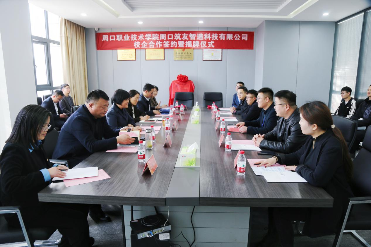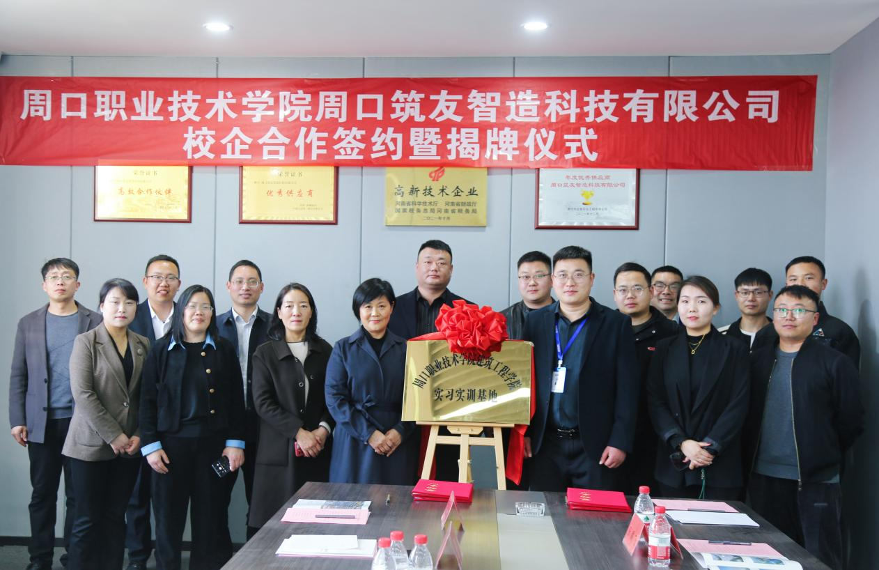 3月20日下午,副校长于爱霞一行赴周口筑友智造科技有限公司访企拓岗,就校企合作产教融合事宜达成协议,举行签约暨揭牌仪式。学校教务处、招生就业处、建筑工程学院主要负责人陪同。
