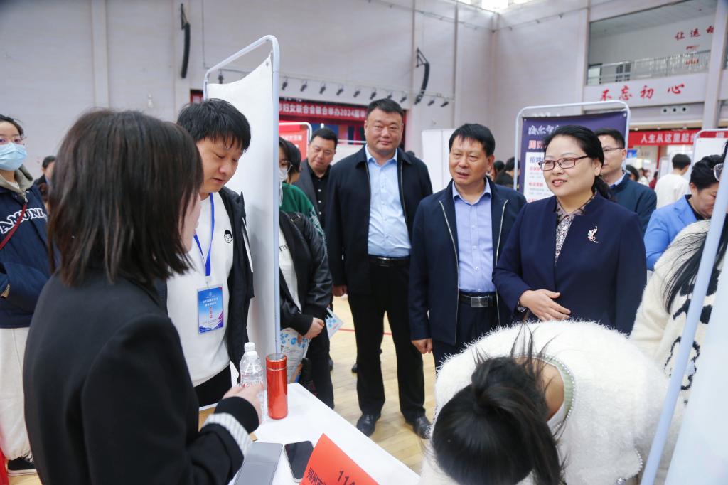 为深入贯彻落实党中央、国务院“稳就业”“保就业”决策部署,抢抓春招关键期,做好beat365官网2024届毕业生就业工作,4月2日,学校与周口市妇女联合会在开元校区体育馆联合举办“春风得意,求职有位”2024届毕业生春季校园双选会。校长李清臣,周口市妇联党组书记、主席张丽娟,副校长王隼、于爱霞出席活动。