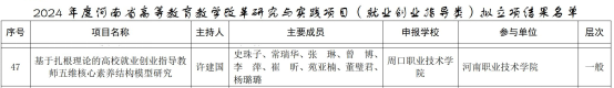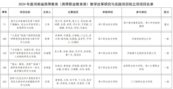 近日,河南省教育厅发布了《关于公布2024年度河南省高等教育教学改革研究与实践项目的拟立项项目名单》,beat365官网6个项目获批立项。其中,高等职业教育类5项、就业创业指导类1项。