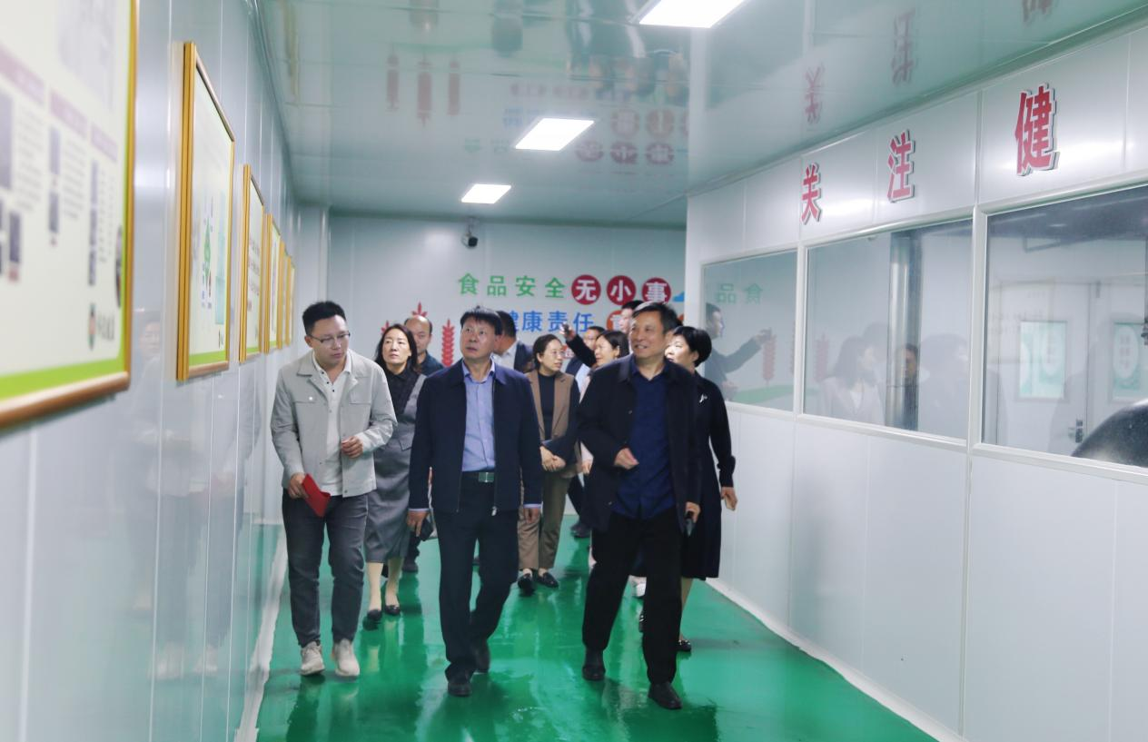 河南省华玖健康产业有限公司董事长董长林对李清臣一行的到来表示热烈欢迎,并陪同参观公司中央厨房、生产车间、研学基地等。