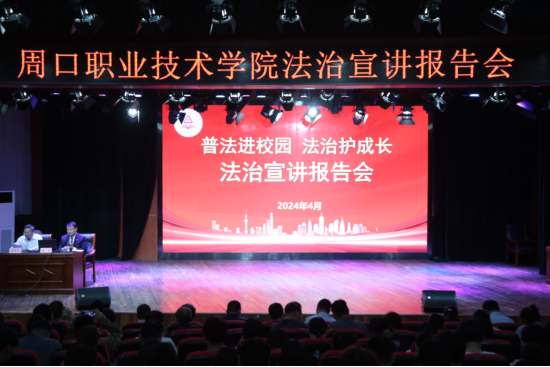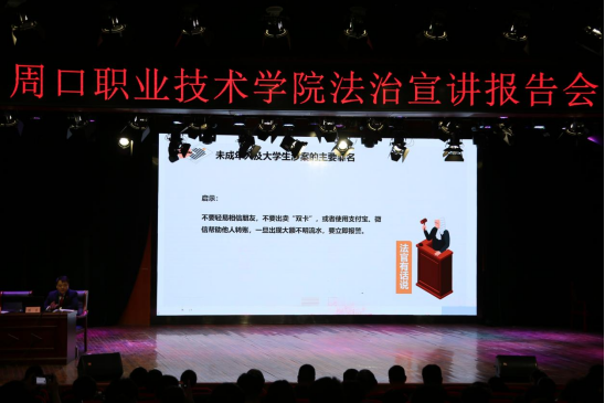 开卷有益,法治润心。为深入学习贯彻习近平法治思想,认真落实教育系统“八五”普法规划,按照河南省教育厅 河南省司法厅《关于开展全省教育系统第三届法治教育宣传周活动的通知》要求,4月23日下午,学校邀请周口市人民法院少年案件审判庭庭长陈东为800余名师生代表进行法治宣讲。学校党委副书记李明臣主持报告会。