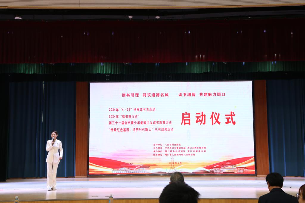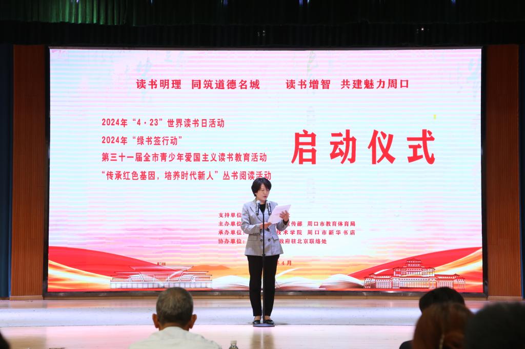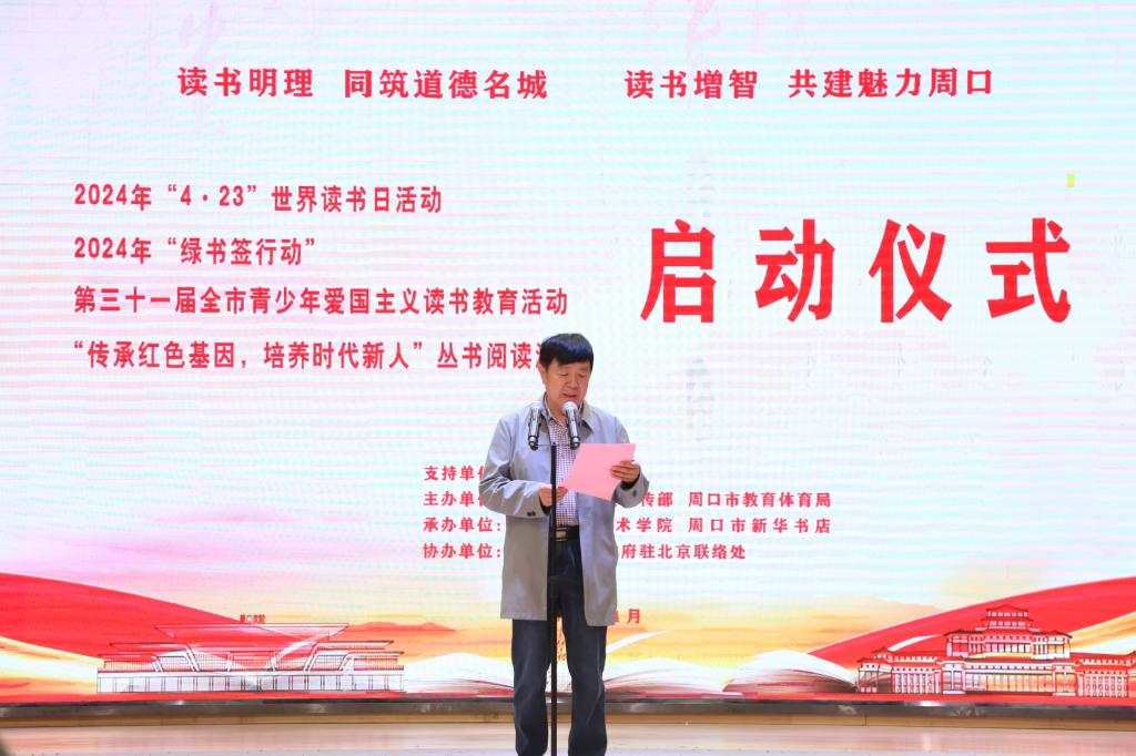 王少青宣布周口市2024年“4·23”世界读书日系列活动启动,并对《周恩来的青少年时代》《苏东坡传》《长安的荔枝》等好书进行推介。