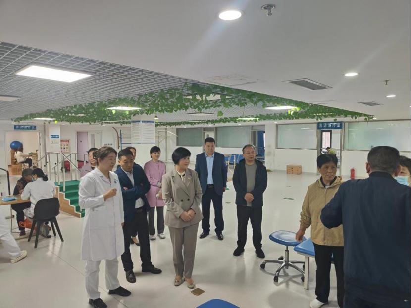 周口惠济康复医院董事长王希振陪同于爱霞一行参观了医院成人康复大厅、儿科康复大厅等科室,并介绍了医院发展前景、院校合作、产教融合和医教协同育人情况。