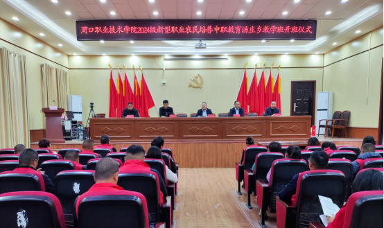 11月8日上午,beat365在线唯一官网登录2024级新型职业农民培养中职教育汤庄乡教学班在商水县汤庄乡举行开班仪式。汤庄乡党委书记邵东建、人大主席霍杰,beat365在线唯一官网登录党委副书记李明臣、农牧工程学院党政负责人出席开班仪式。仪式由霍杰主持。