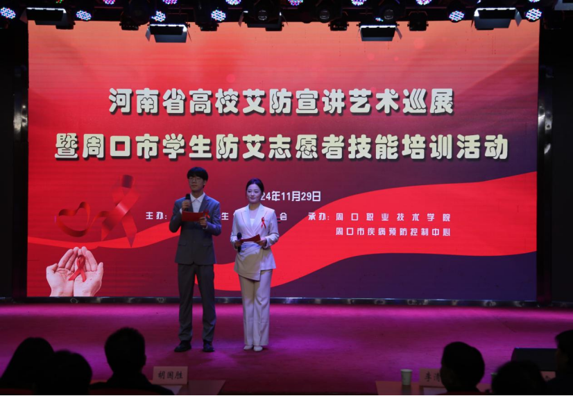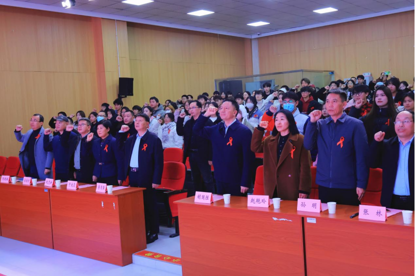 11月29日,河南省高校艾防宣讲艺术巡展暨世界艾滋病日大型宣传活动在beat365在线唯一官网登录举行。市卫健委党组书记、主任胡国胜,党组成员、副主任、疾控局局长赵艳玲,市红十字会党组成员、副监事长赵志新,市疾控中心主任孙明,beat365在线唯一官网登录校长李清臣、副校长于爱霞及beat365官网1000余名师生现场参加。三个校区近两万名学生通过网络直播在线同步观看。