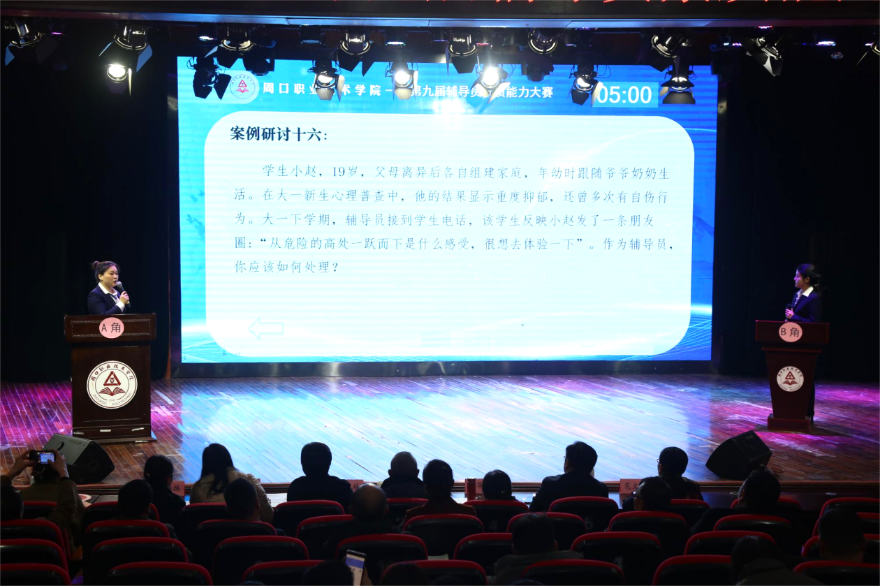 决赛设置“案例研讨”和“谈心谈话”两个环节,全方位考察辅导员综合素质。“案例研讨”环节,18名选手随机分为9组,以“AB角随机组合”形式开展研讨;“谈心谈话”环节,模拟真实工作场景,与学生进行沟通。参赛辅导员们凭借丰富的工作经验和扎实的理论素养,逐一破解难题,赢得现场观众的阵阵掌声。