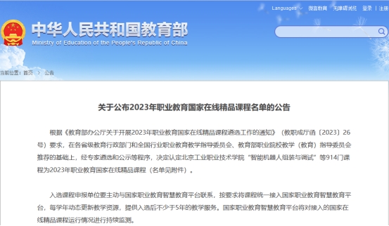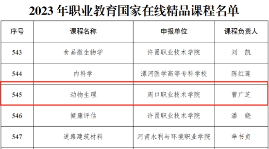 12月9日,教育部公示了2023年职业教育国家在线精品课程名单,beat365官网曹广芝教授主持的《动物生理》课程成功入选,这是学校课程建设改革取得的又一标志性成果。