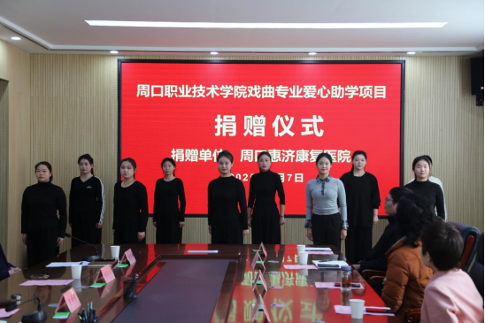 王隼在致辞中对周口惠济康复医院的爱心助学捐赠表示衷心感谢,并介绍了学校戏曲专业的基本情况和取得成绩。他表示,惠济康复医院的捐赠充分反映出其深厚的社会责任感和对关心教育事业的缱绻情意,也希望双方今后能加强交流,拓宽合作的深度和广度,共同为培养出更多优秀人才和区域经济社会发展贡献力量。