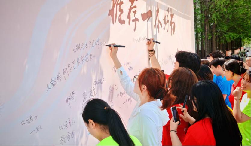 启动仪式后,校长李清臣与现场师生纷纷将自己喜欢的书目写在“好书推荐墙”上。