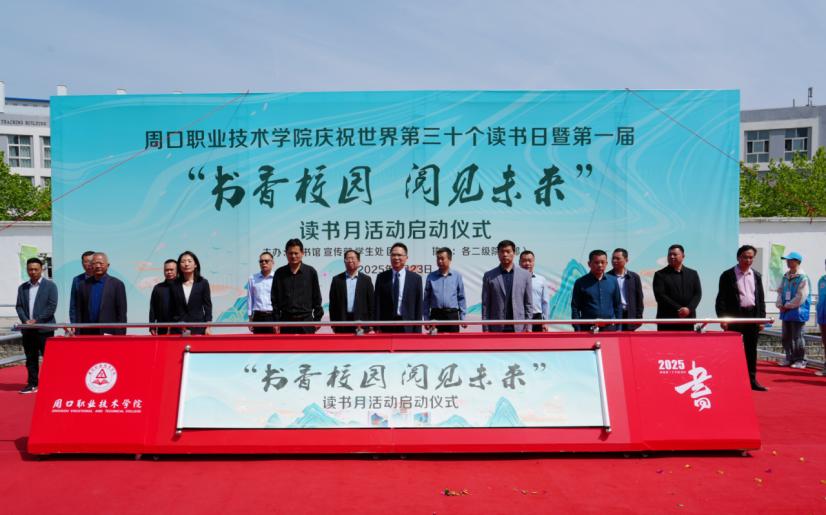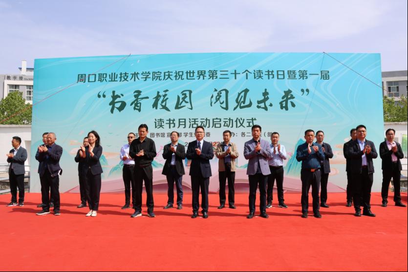 台上领导共同按下仪式启动键,开启画卷台,beat365官网庆祝第30个“世界读书日”暨第一届“书香校园 阅见未来”读书月活动正式启动。